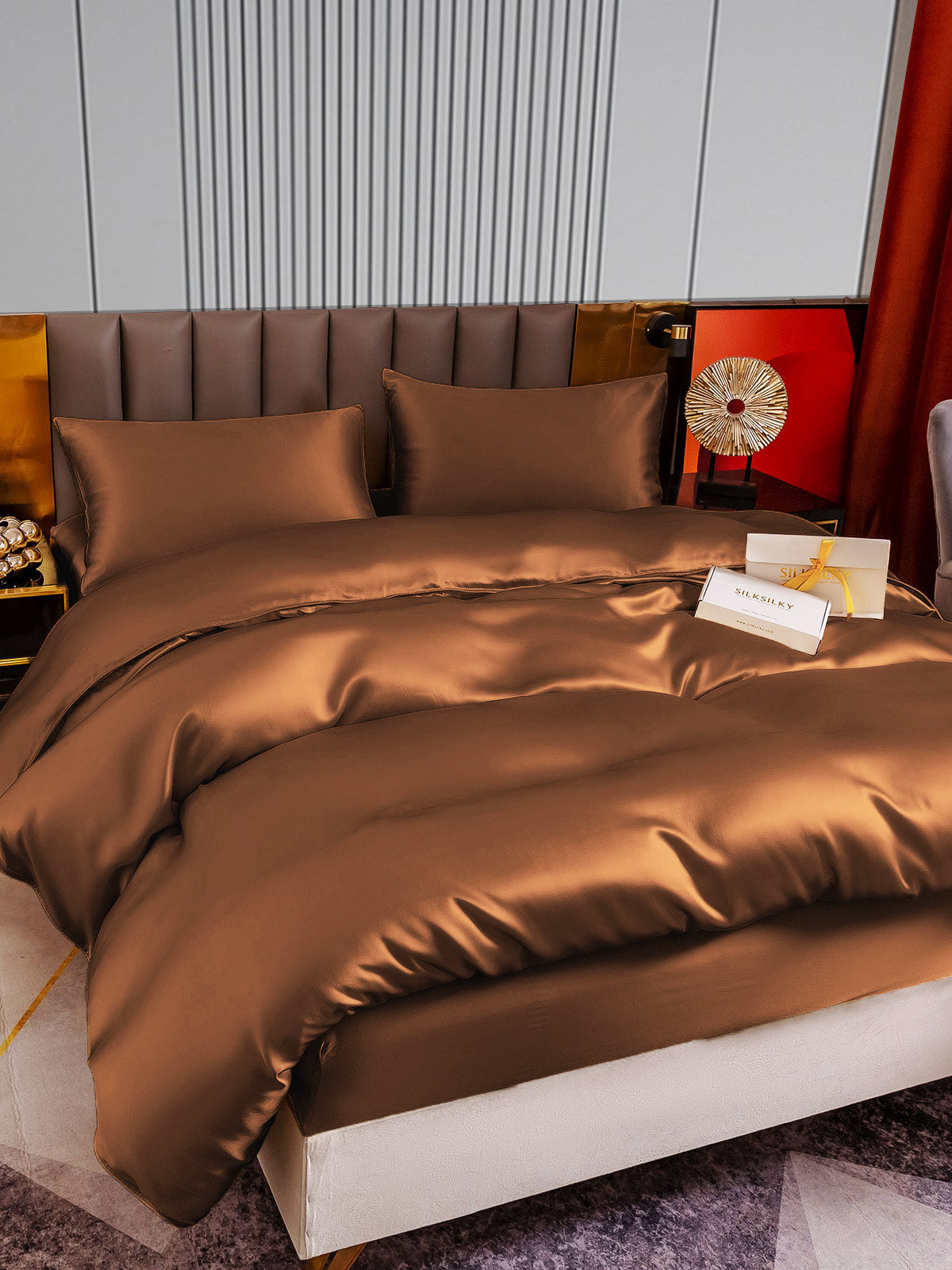 • Dettagli: Migliora la qualità del tuo sonno con il nostro set di biancheria in seta. Questo set per il letto, composto da un copripiumino, lenzuolo con angoli e federe, coccola la tua pelle e i tuoi capelli mentre dormi. Migliora la tua esperienza mentre ti riposi. Lo spessore lussuoso di 22 mm lo distingue, offrendo una morbidezza impareggiabile e un tocco di eleganza alla tua camera da letto.