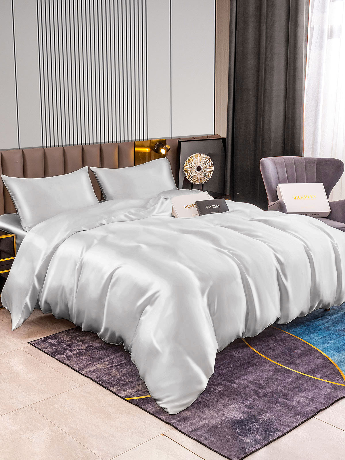 Set di seta 22Momme da 4 pezzi: copripiumino + lenzuolo con angoli + 2 federe