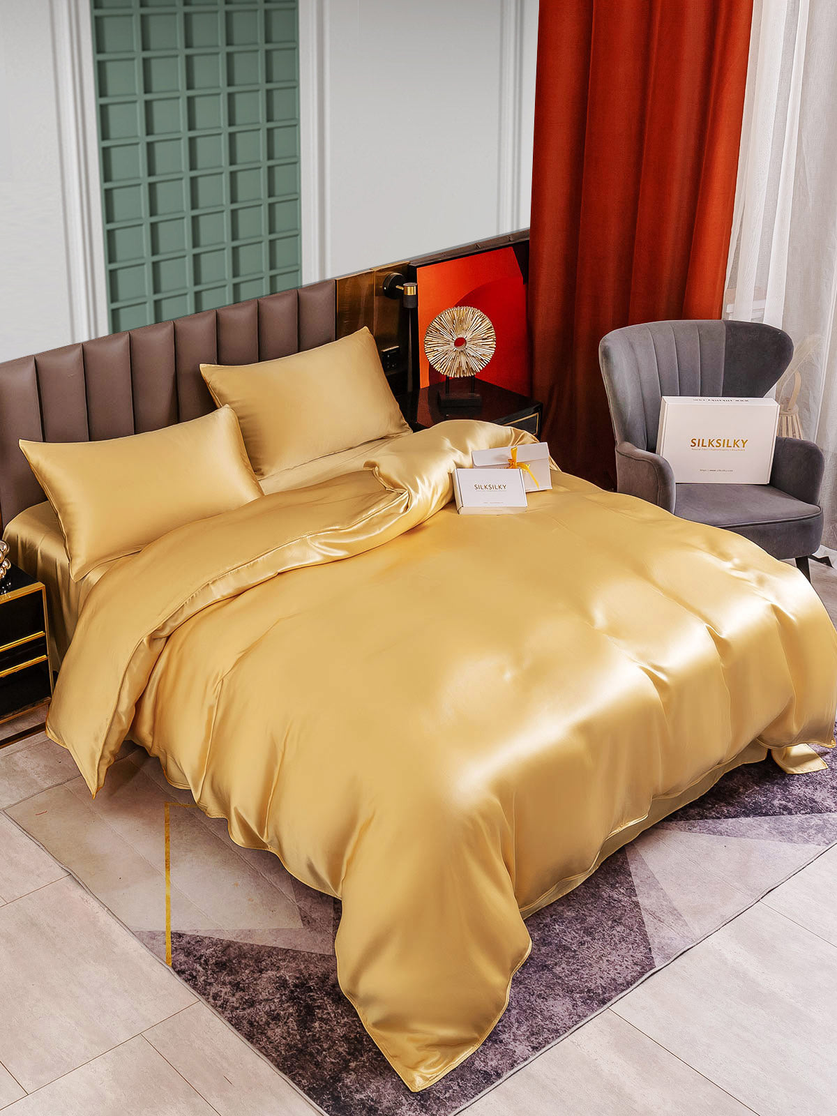 • La nostra linea 25 Momme di set di biancheria da letto in seta senza cuciture è realizzata al 100% in seta di gelso di grado A.