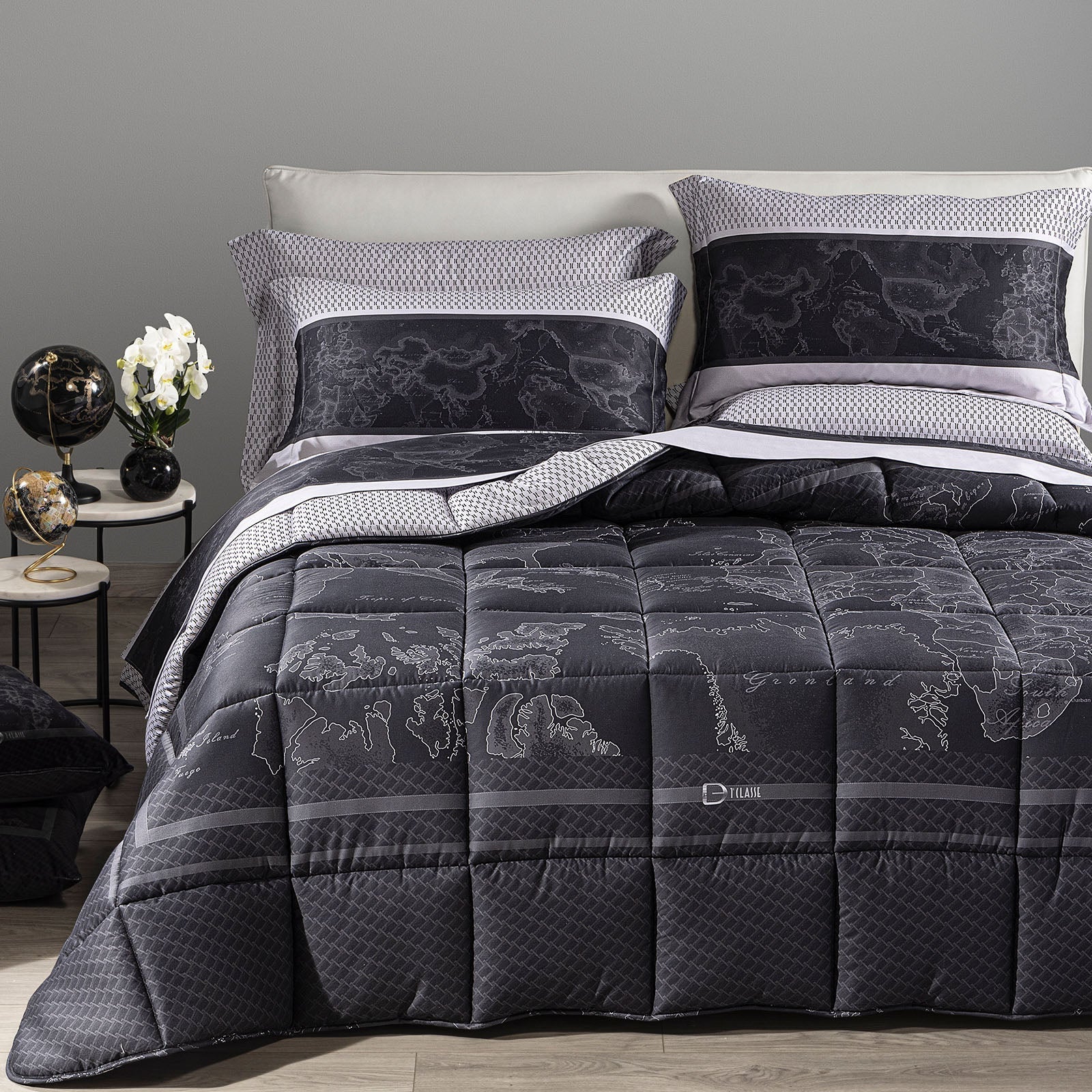 Raffinatezza e comfort si incontrano nella Trapunta Geo Night firmata Alviero Martini 1A Classe.